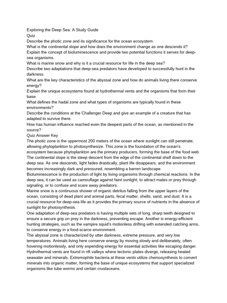 Exploring the Deep Sea: A Study Guide