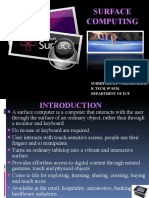 1. INTRODUCTION..................01 2.WHAT IS SURFACE COMPUTING?.......................................................................02 3.HISTORY OF SURFACE COMPUTING..................03 3.1 Hardware Design..............05 3.2 From Prototype to Product...........06 4.KEY ATTRIBUTES OF SURFACE COMPUTING.........07 5.TECHNOLOGY BEHIND SURFACE COMPUTING.............08 6.MICROSOFT SURFACE OVERVIEW............09 6.1 The Hardware..........09 6.2 System Software...............11 7. FEATURES............12 8. PERCEPTIVE PIXEL...........14 9.APPLICATIONS OF SURFACE COMPUTING..............16 9.1 Water.......16 9.2 Video Puzzle.......17 9.3 Paint..........17 9.4 Music............18 9.5 Photos..............19 9.6 Casino...........19 9.7 Dining.............20 10. SURFACE COMPUTING IN FUTURE.............21 11. CONCLUSION...............22 12. BIBLIOGRAPHY........23