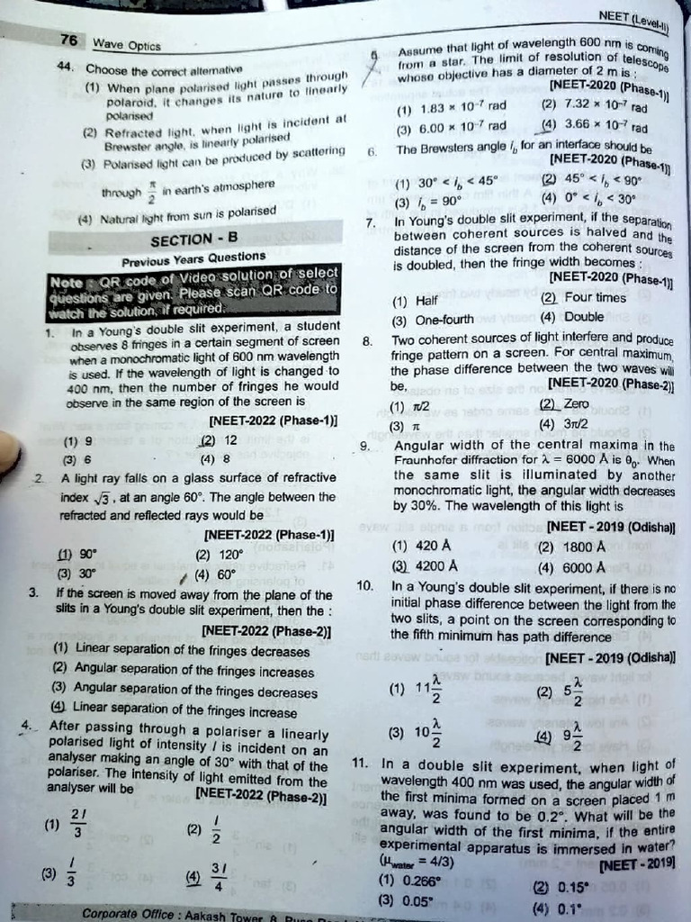 35 In a Fresnel biprism experiment, the two as 16 cm 42. In Young's double slit experiment carried out with