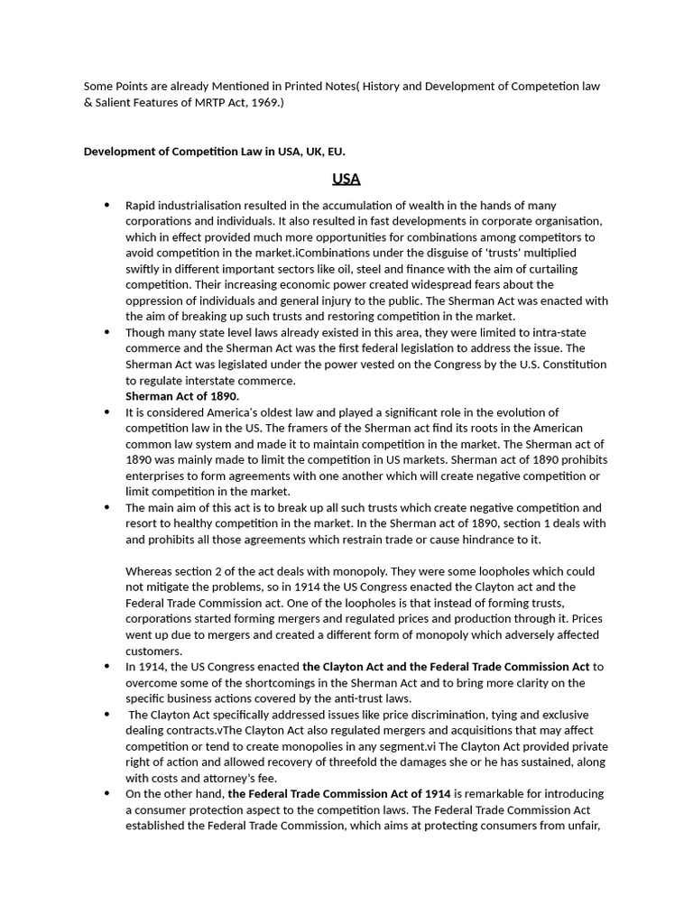 in India. This led to the subsequent enactment of the Competition Act, 2002.