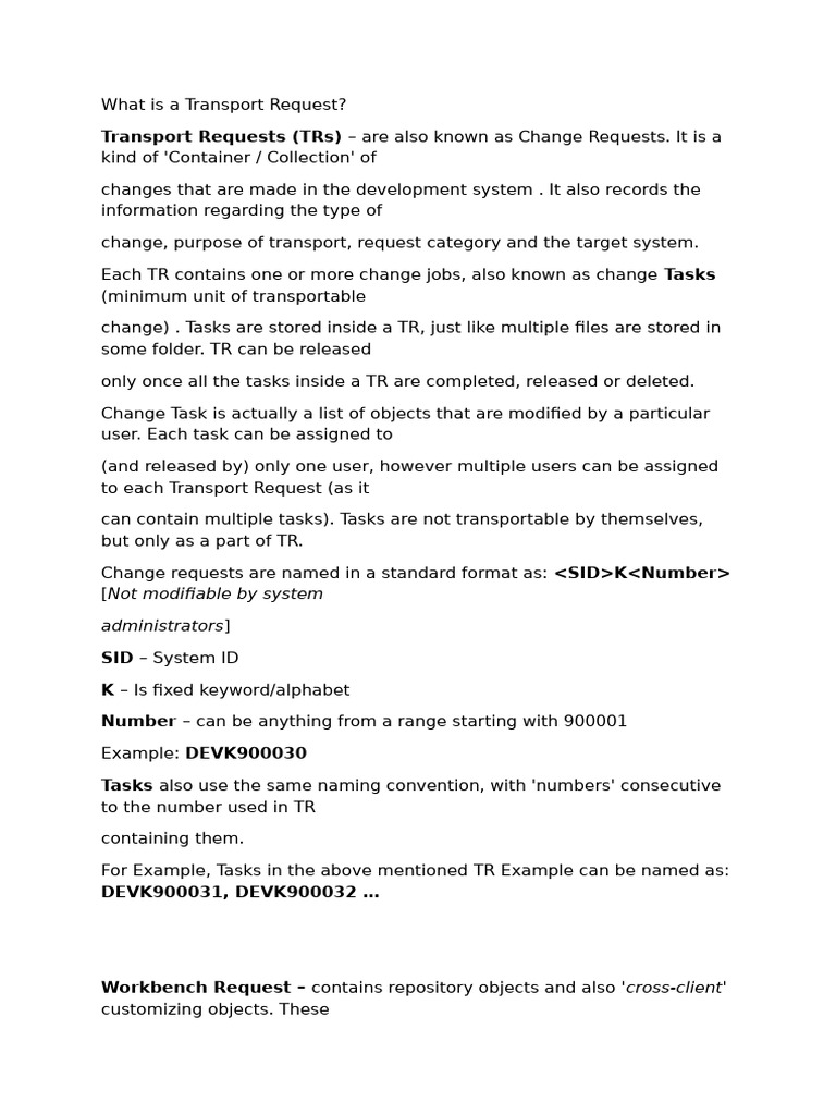 Transport Requests (TRs) – are also known as Change Requests. It is a