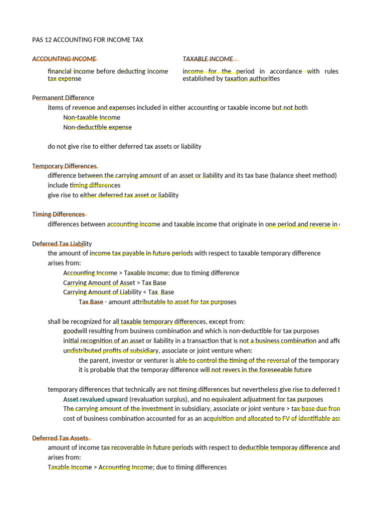 PAS 12 ACCOUNTING FOR INCOME TAX