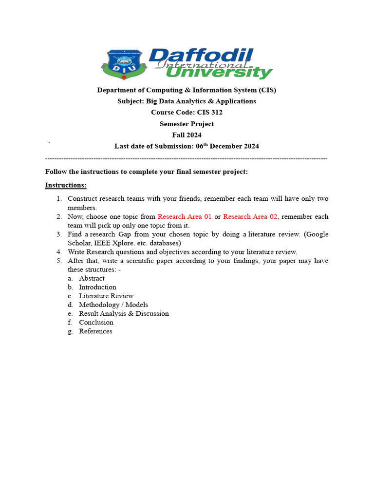 2. Now, choose one topic from Research Area 01 or Research Area 02, remember each