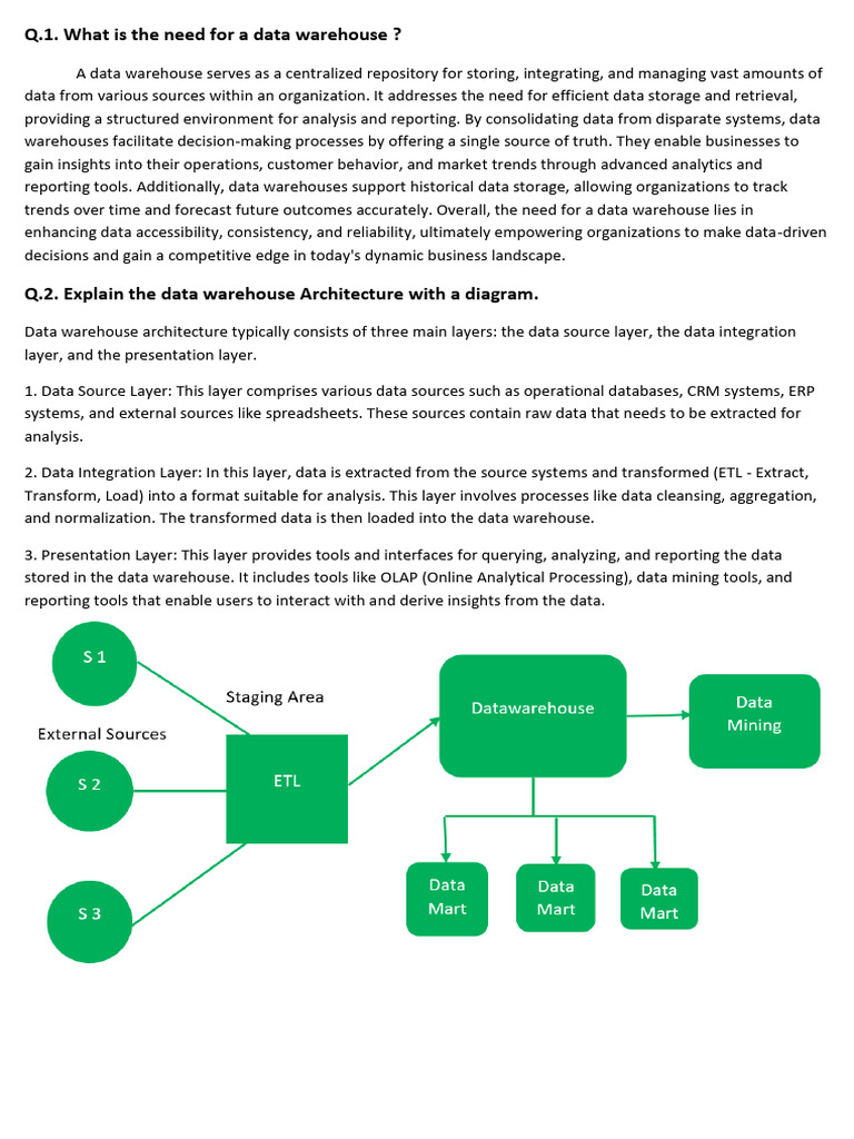 Q.1. What is the need for a data warehouse ?