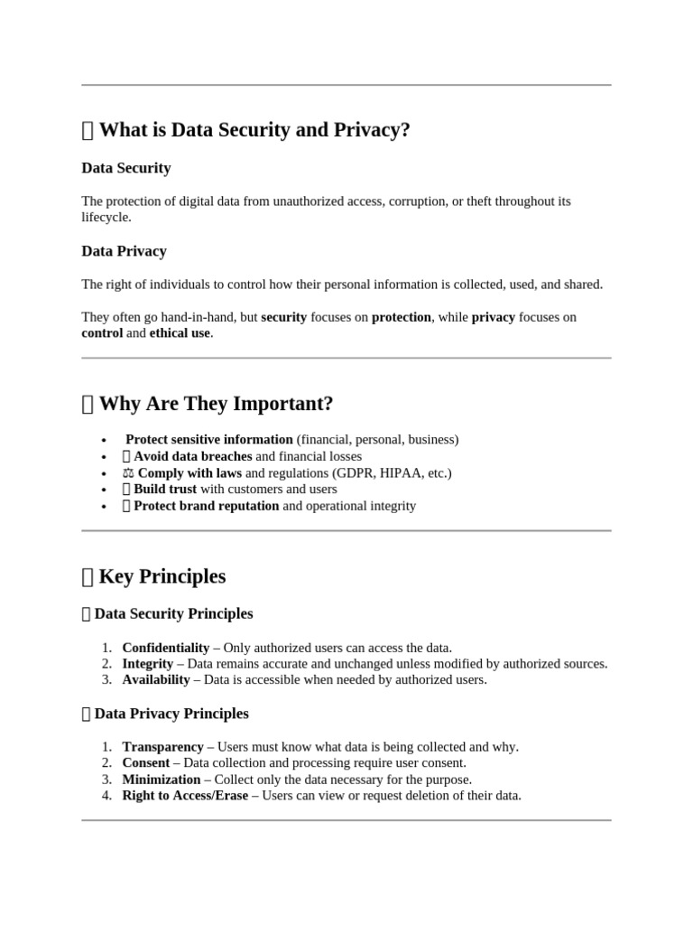 ✅ Best Practices for Data Security & Privacy