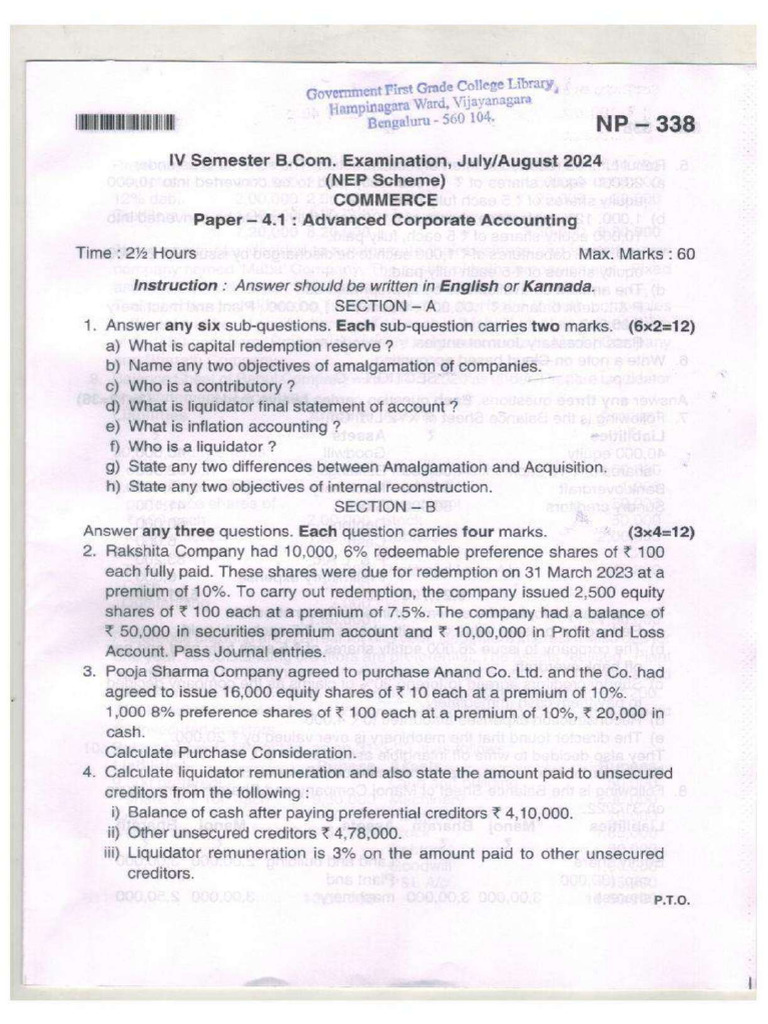 IV Semester B.Com. Examination, July/August 2024