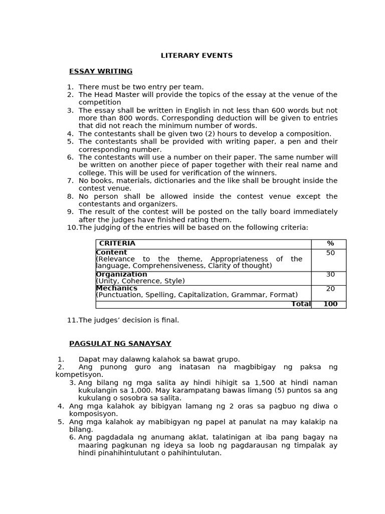2. Ang paksa ng talumpati ay ibibigay ng Lupon ng Inampalan sa araw ng