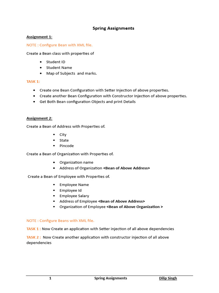 TASK 1 : Now Create an application with Setter injection of all above dependencies