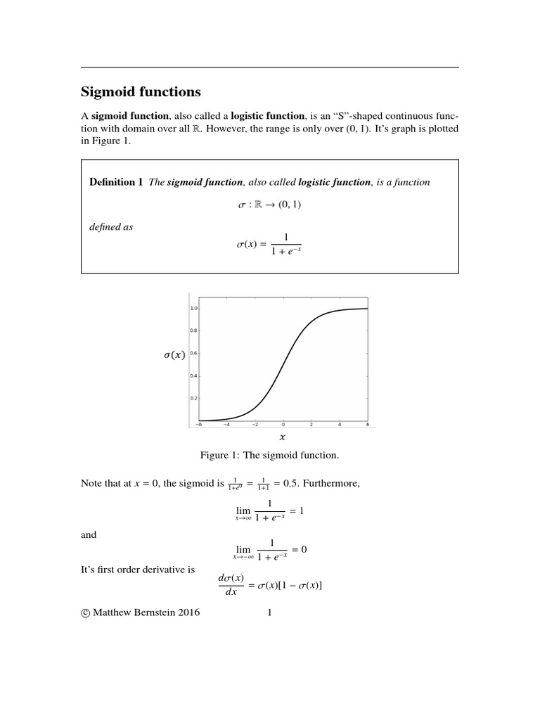 Definition 1 The sigmoid function, also called logistic function, is a function