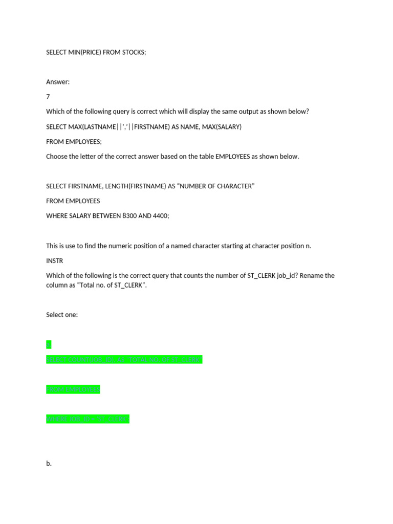 Choose the letter of the correct answer based on the table EMPLOYEES as shown below.
