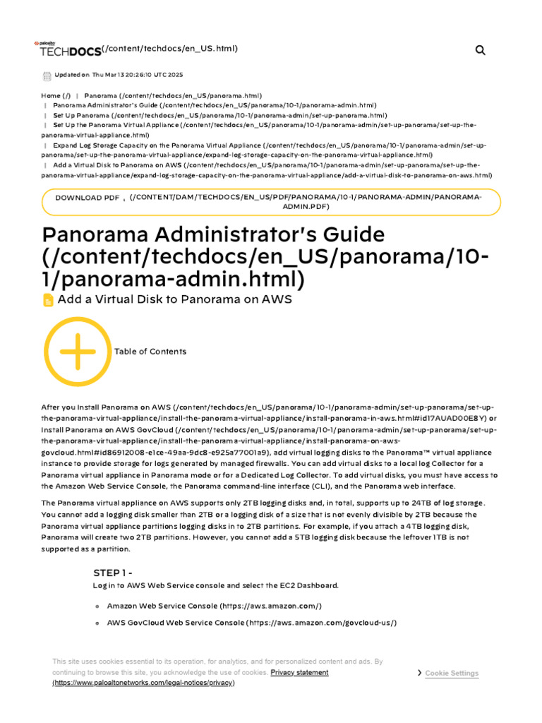 | Add a Virtual Disk to Panorama on AWS (/content/techdocs/en_US/panorama/10-1/panorama-admin/set-up-panorama/set-up-the-