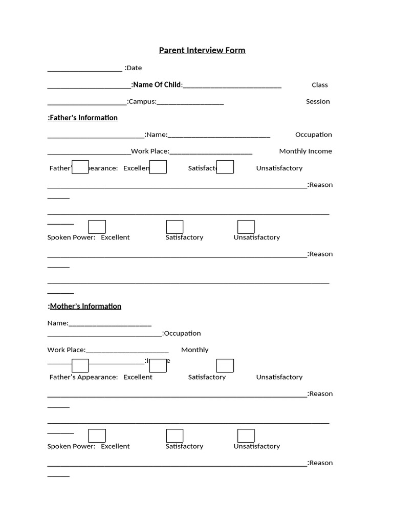Father’s Appearance: Excellent Satisfactory Unsatisfactory