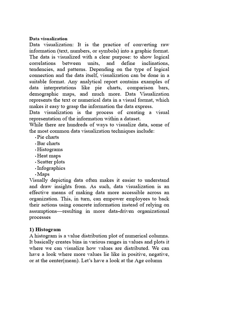 spot trends, patterns, or anomalies. Bar plots, scatter