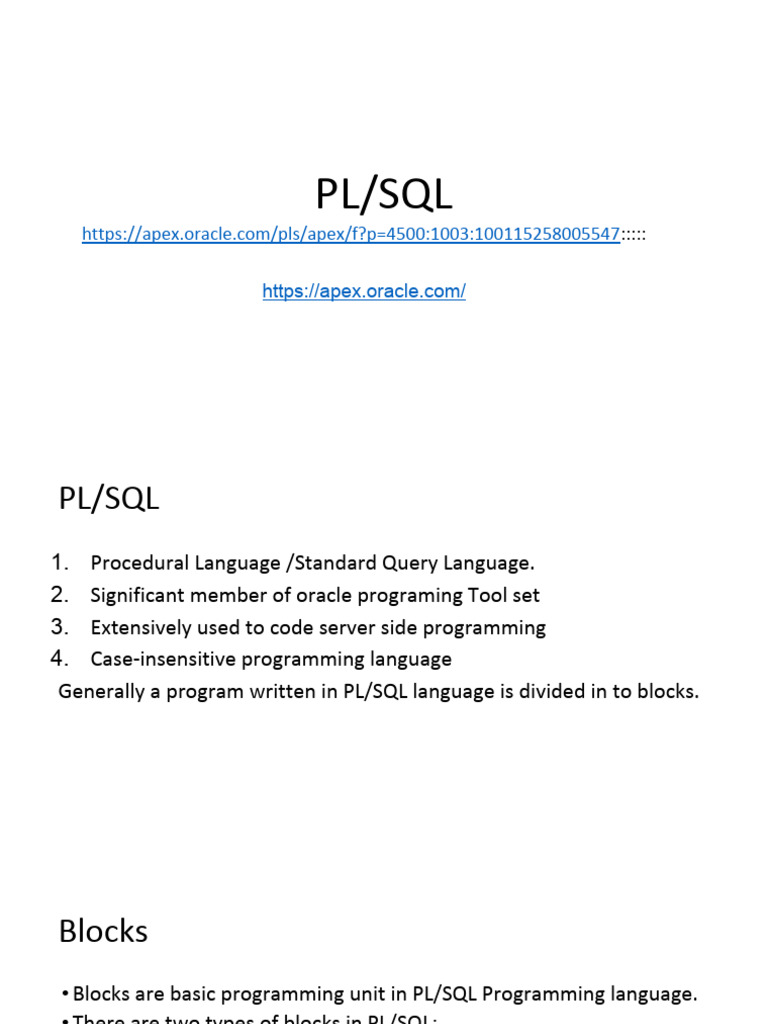 • Blocks are basic programming unit in PL/SQL Programming language.