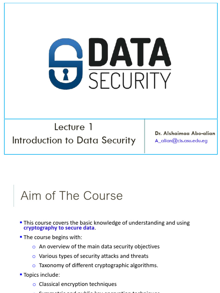Introduction to Data Security A_alian@cis.asu.edu.eg