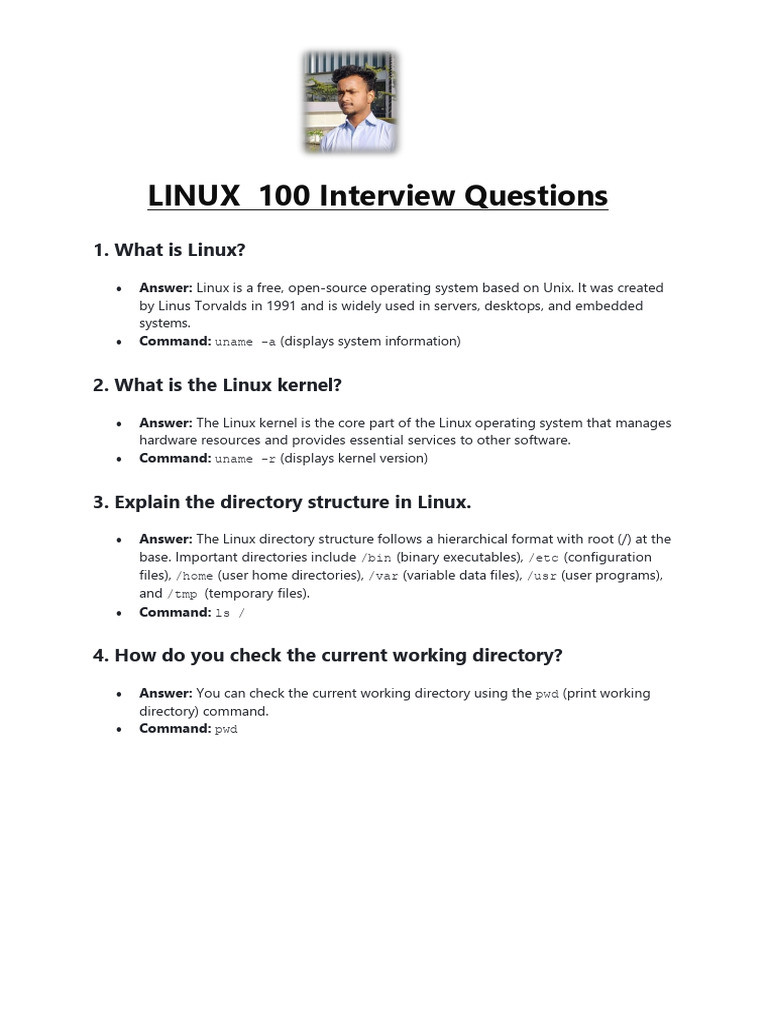 • Answer: Linux is a free, open-source operating system based on Unix. It was created