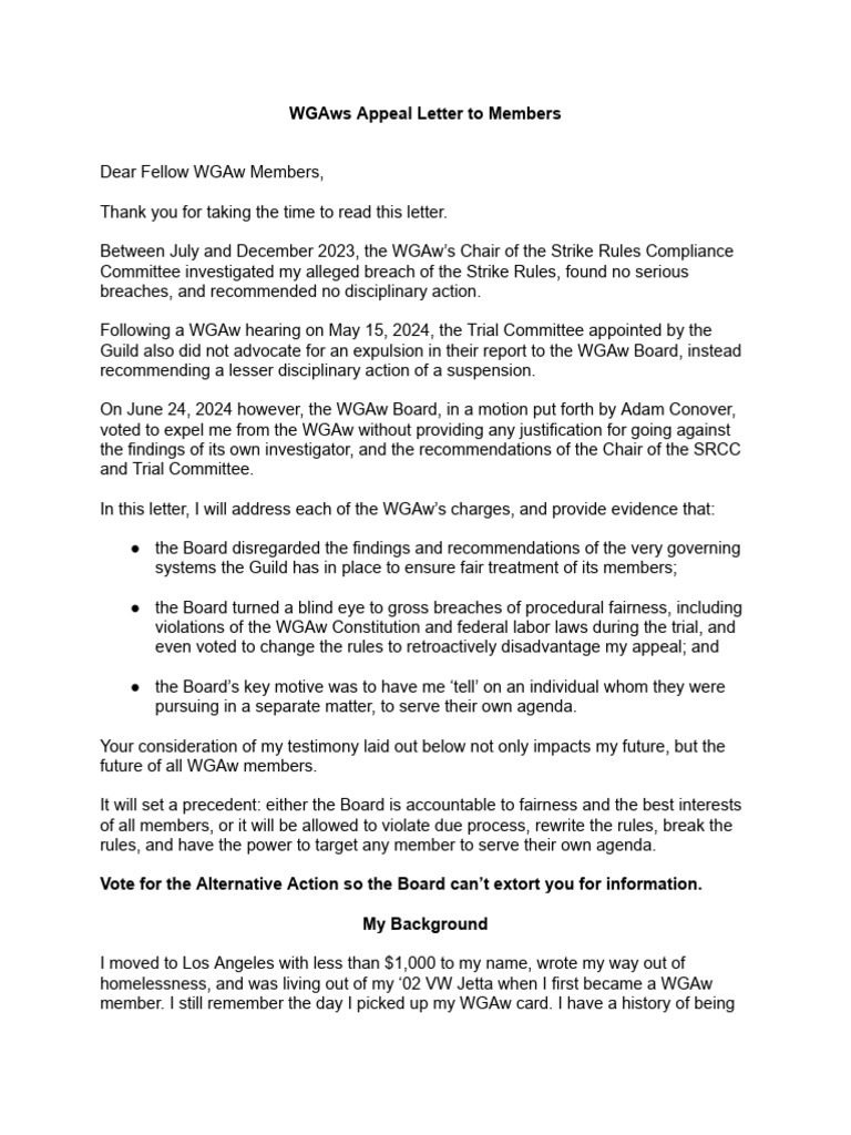 Guild also did not advocate for an expulsion in their report to the WGAw Board, instead