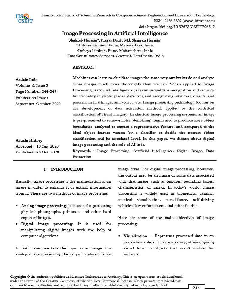Accepted : 10 Sep 2020 image processing and the role of AI in it.
