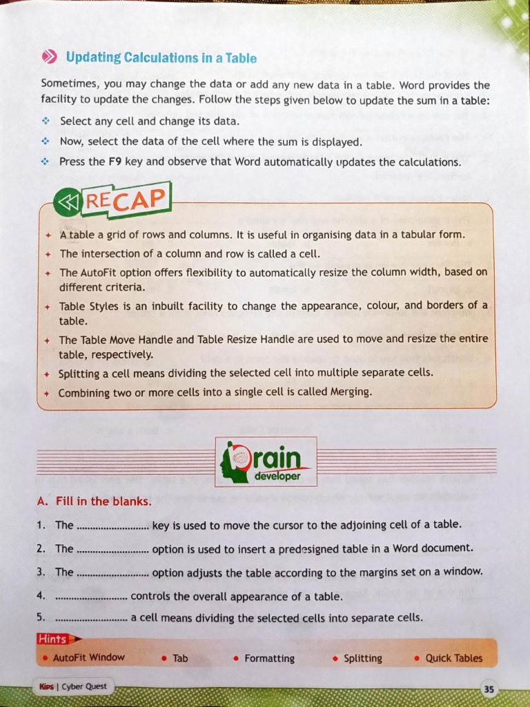 to update thechanges.Followthe stepsgiven below to update the sum in a table: