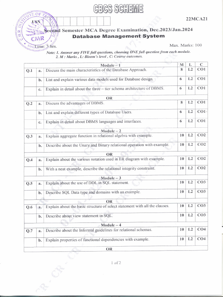 OnAny 8 a. Explain with an example the Boyce -Codd Normal Form (BCNF). (10 Marks)