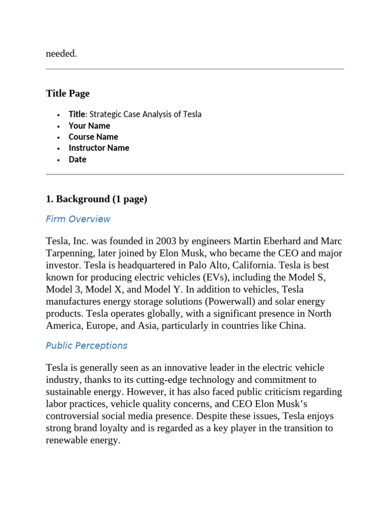 Title: Strategic Case Analysis of Tesla