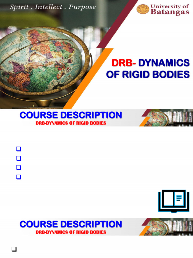 ❑ COURSE NAME: DYNAMICS OF RIGID BODIES
