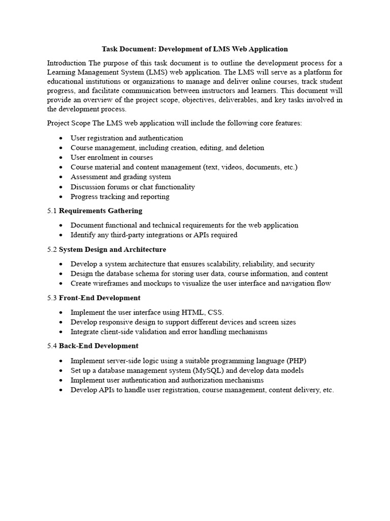 Learning Management System (LMS) web application. The LMS will serve as a platform for