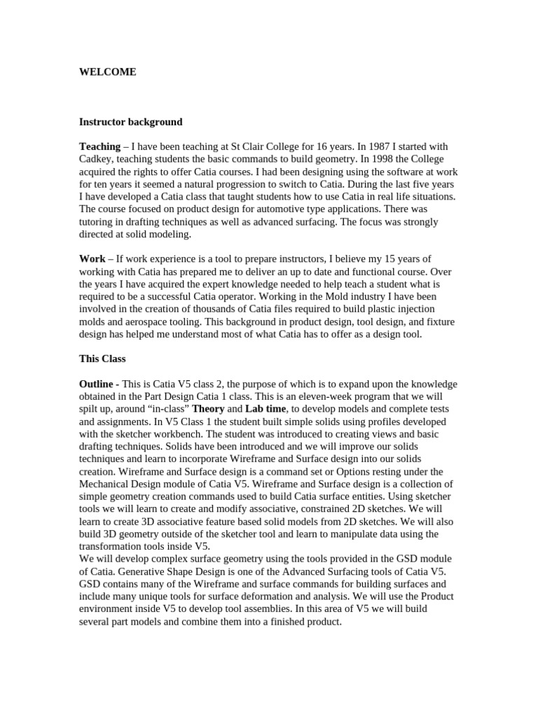 Outline - This is Catia V5 class 2, the purpose of which is to expand upon the knowledge