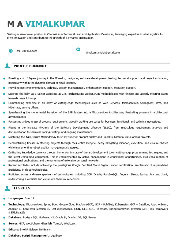 ● Proficient across a diverse spectrum of technologies, including GCP, Oracle, PostGreSQL, Angular, Struts, Spring, Jira, and Junit,