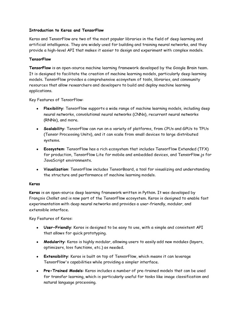 François Chollet and is now part of the TensorFlow ecosystem. Keras is designed to enable fast
