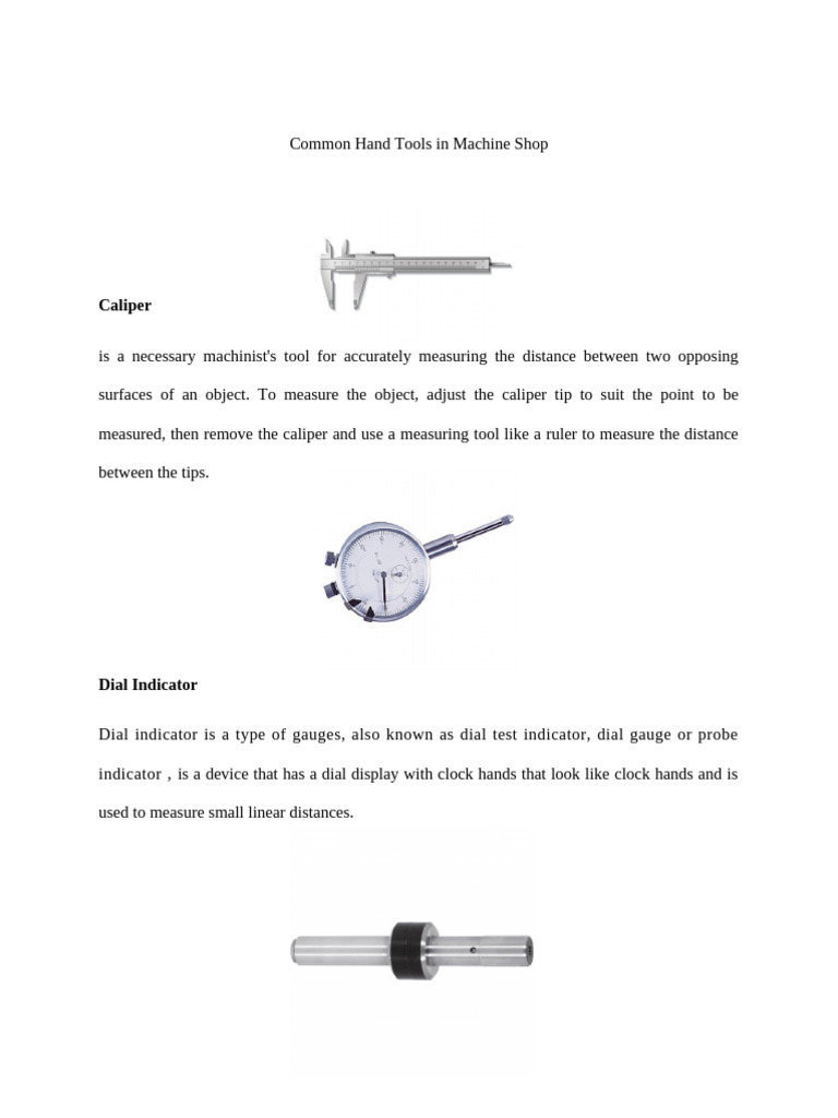 machine shops, such as micrometers, sine bars, calipers, and dial indicators