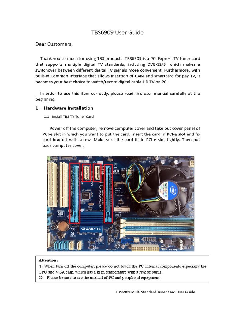 Thank you so much for using TBS products. TBS6909 is a PCI Express TV tuner card