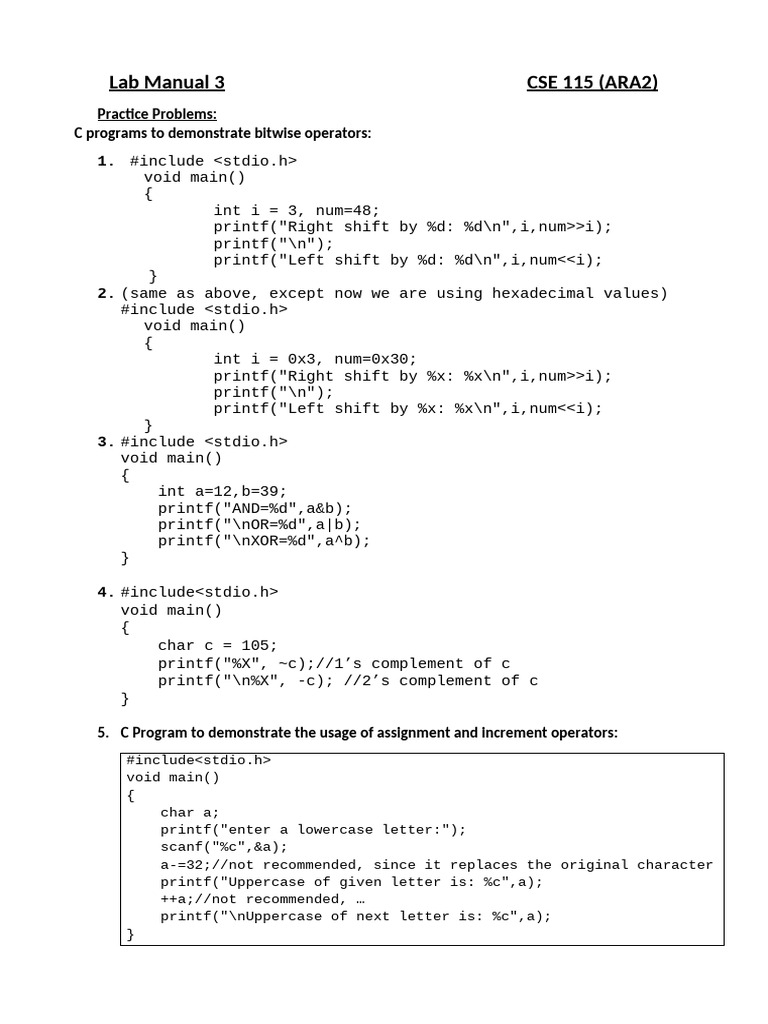 5. C Program to demonstrate the usage of assignment and increment operators:
