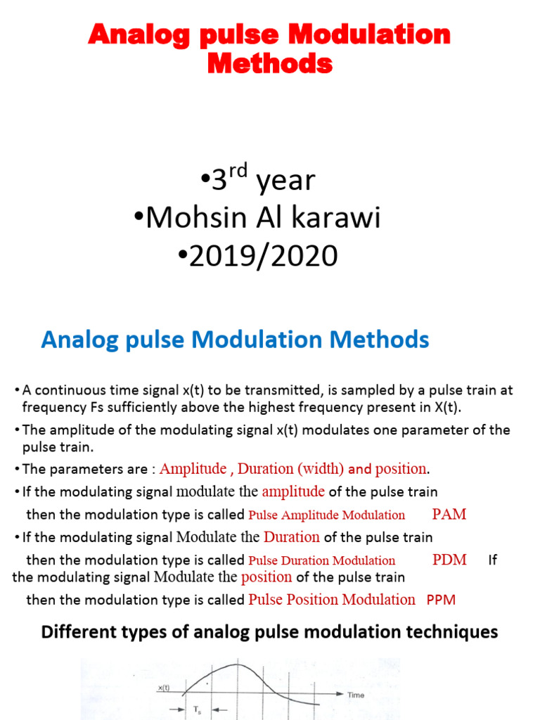 • Pulse Position Modulation (PPM) and Pulse Duration
