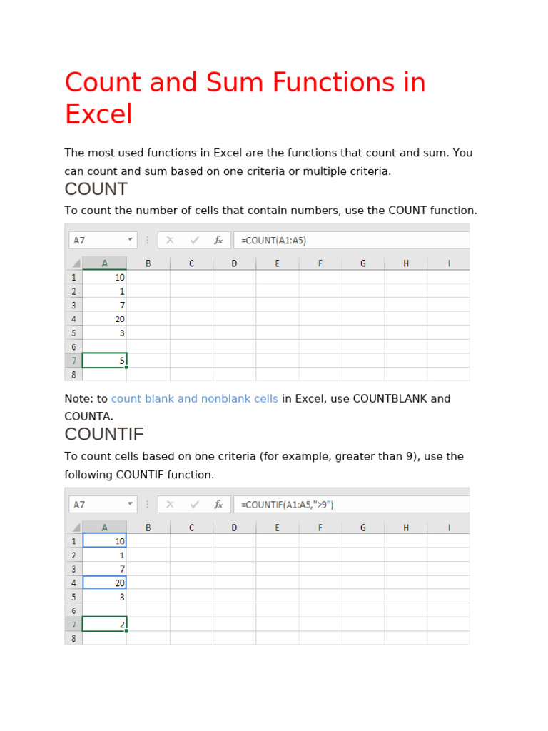 Note: to count blank and nonblank cells in Excel, use COUNTBLANK and