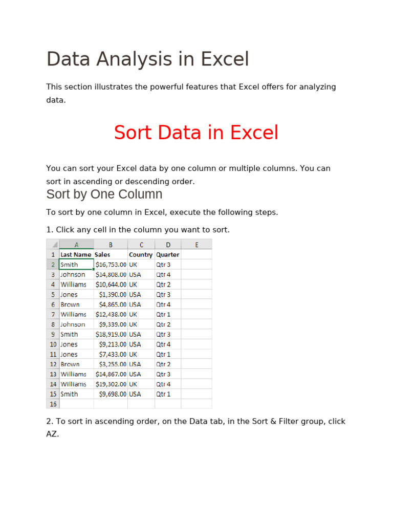 1. On the Data tab, in the Sort & Filter group, click Sort.