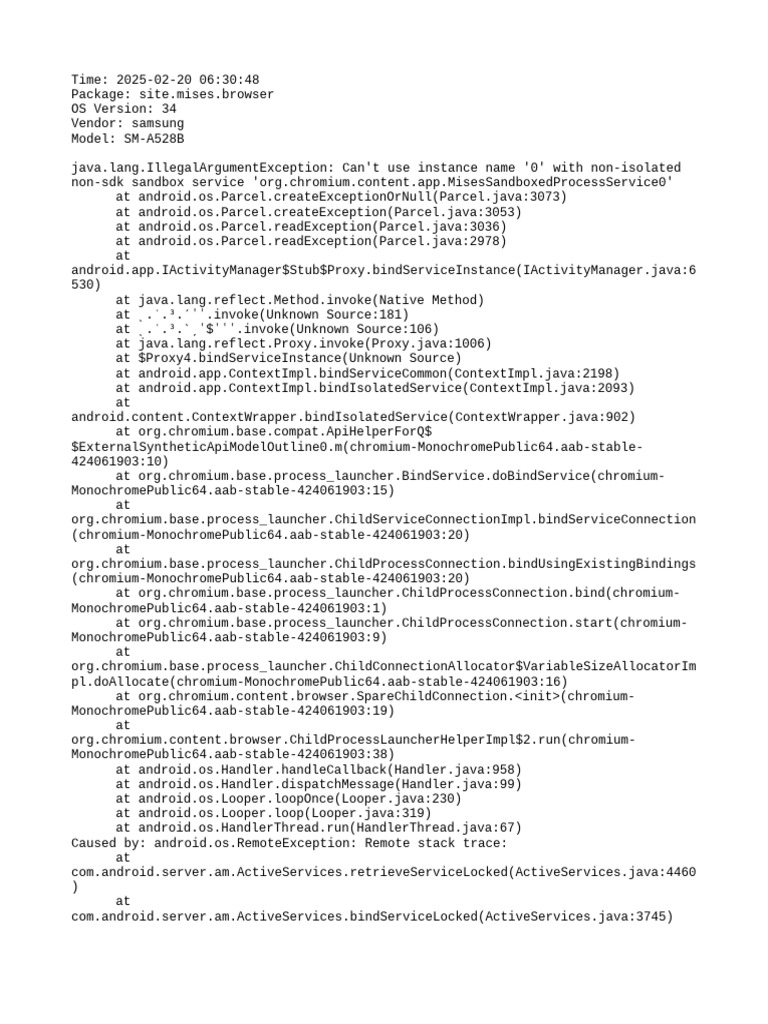 non-sdk sandbox service 'org.chromium.content.app.MisesSandboxedProcessService0'