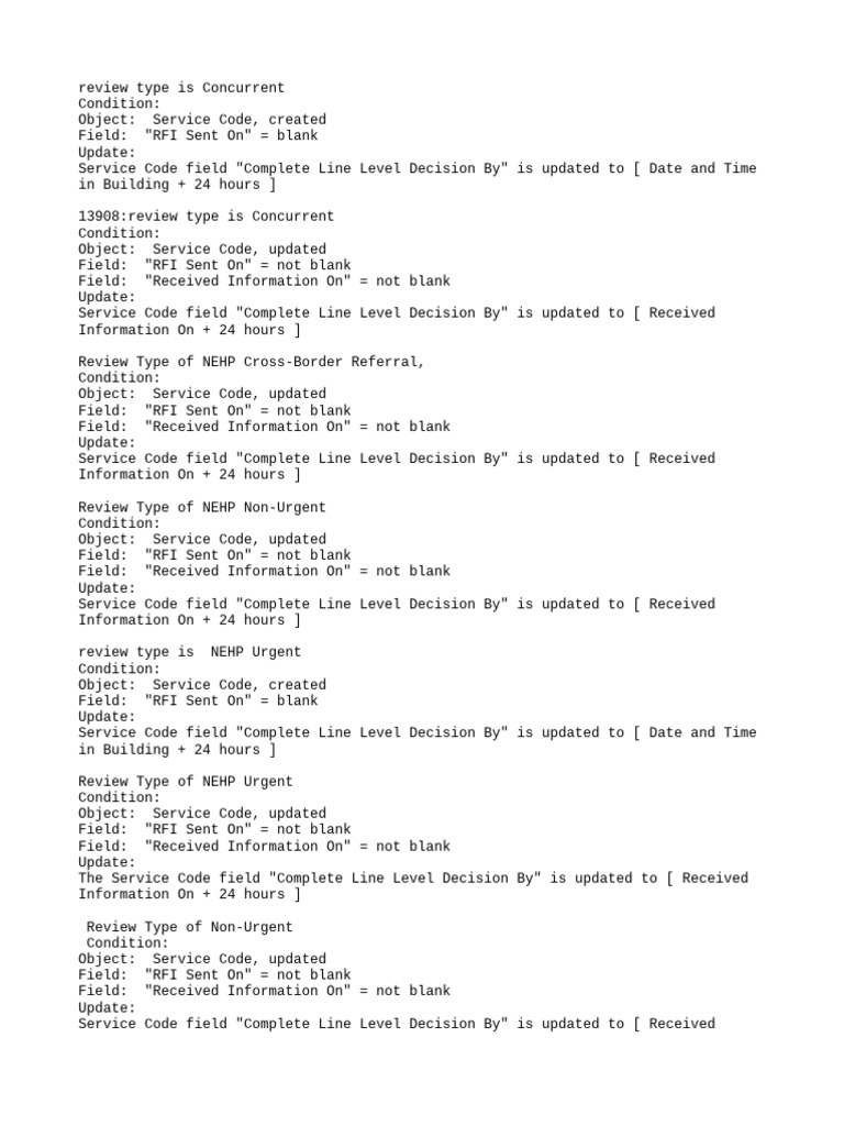 Service Code field "Complete Line Level Decision By" is updated to [ Received