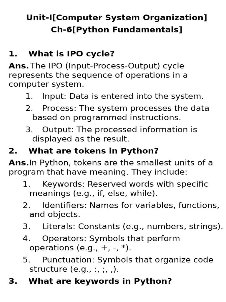 Ans. The IPO (Input-Process-Output) cycle