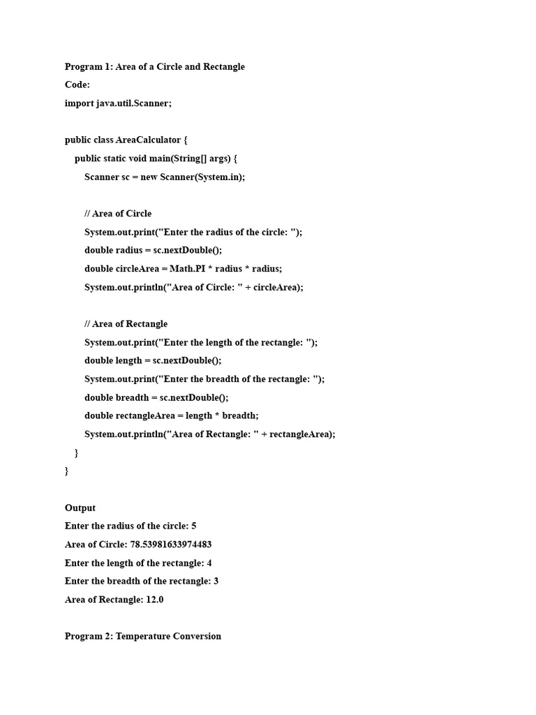 System.out.println("Area of Rectangle: " + rectangleArea);
