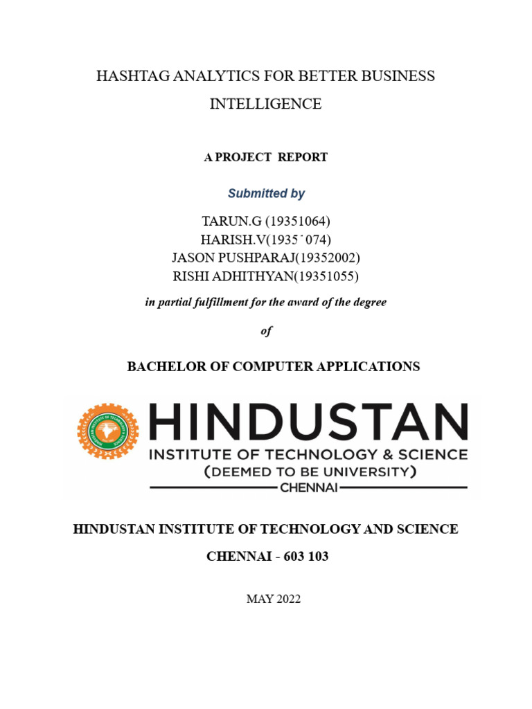 of Computer Applications, for having evinced keen interest in our project and for her continued