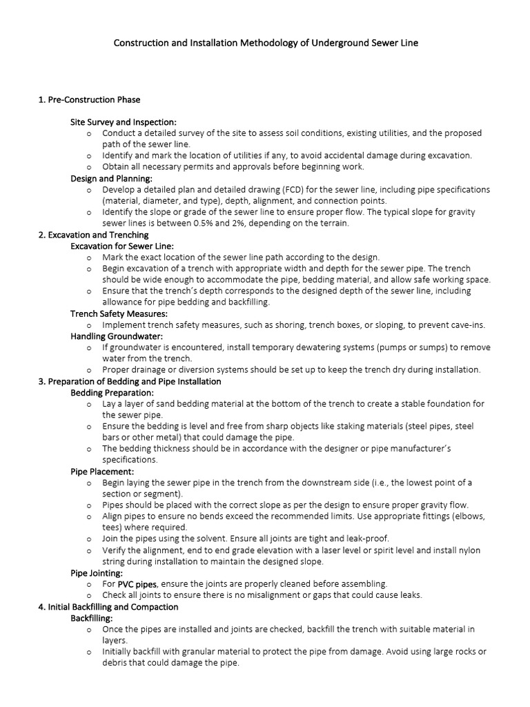 Construction and Installation Methodology of Underground Sewer Line