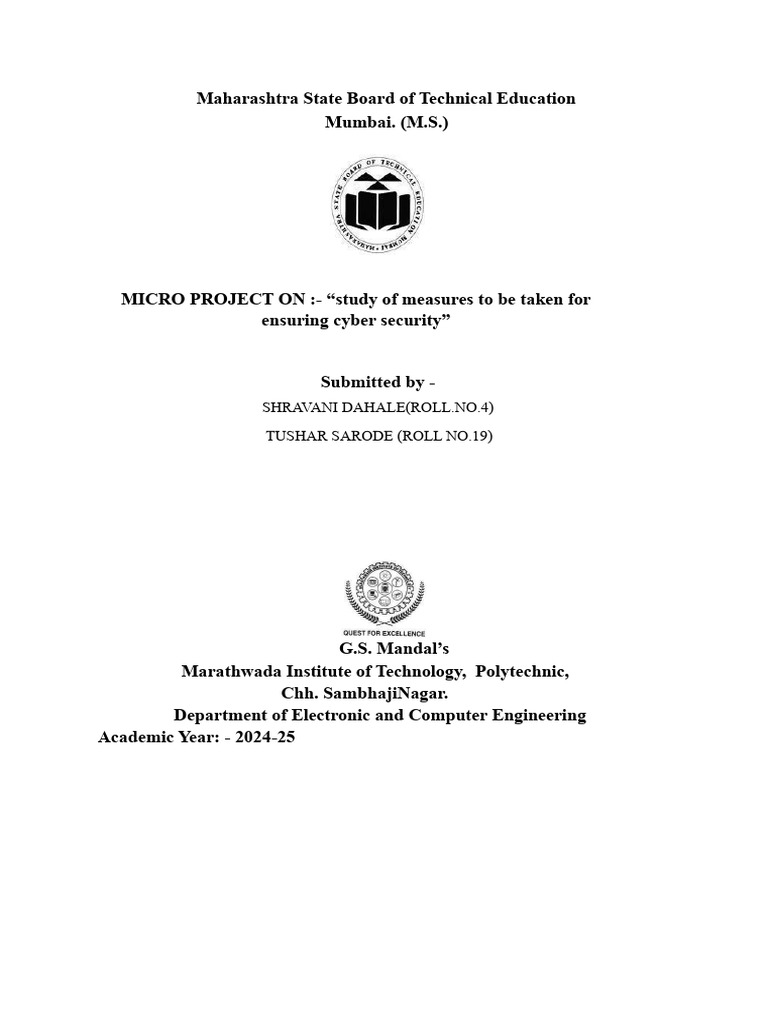 • A micro project on "Study of Measures to Be Taken for Ensuring Cyber Security"