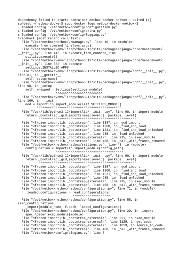 su@test:~/netbox-docker$ sudo docker logs netbox-docker-netbox-1
