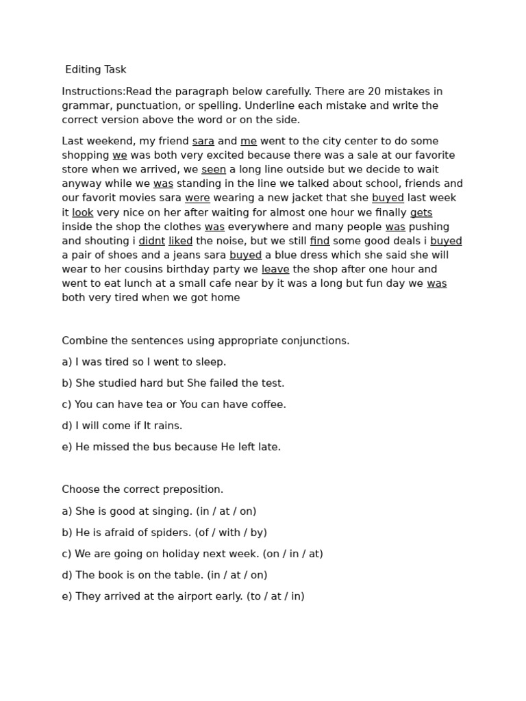 grammar, punctuation, or spelling. Underline each mistake and write the