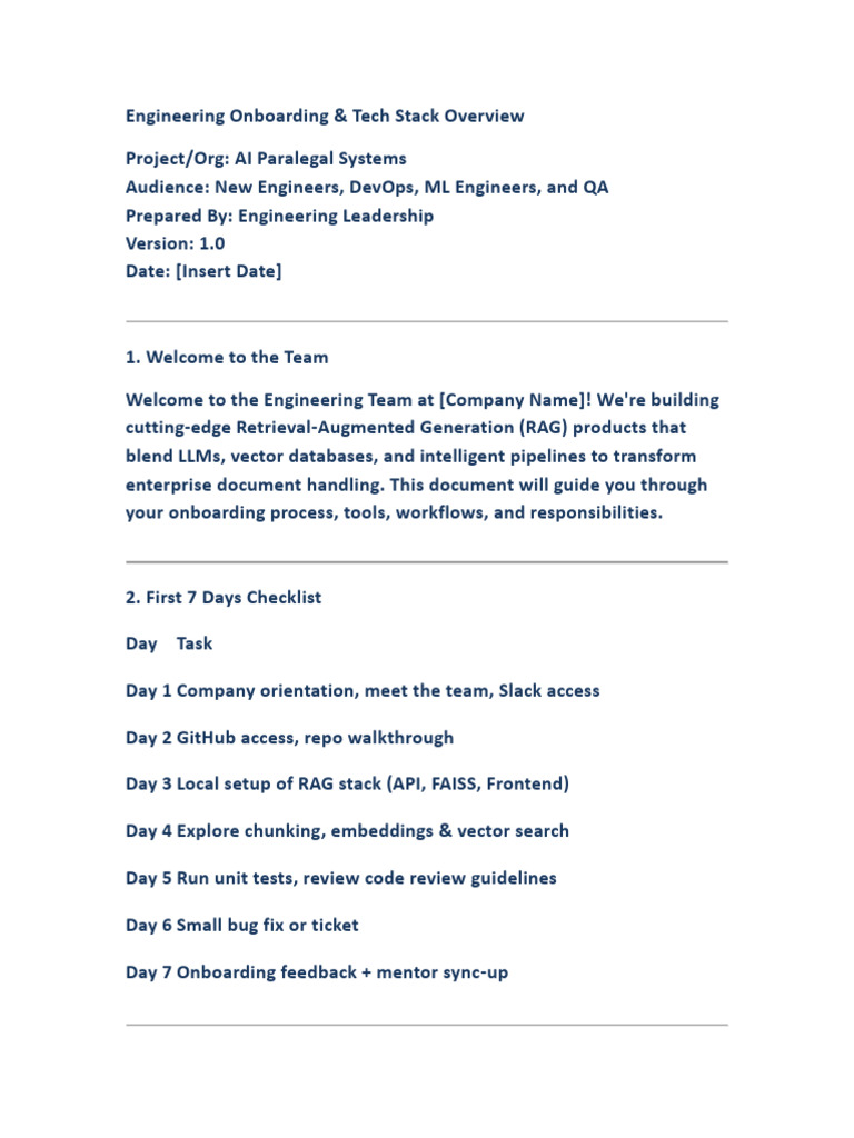 your onboarding process, tools, workflows, and responsibilities.