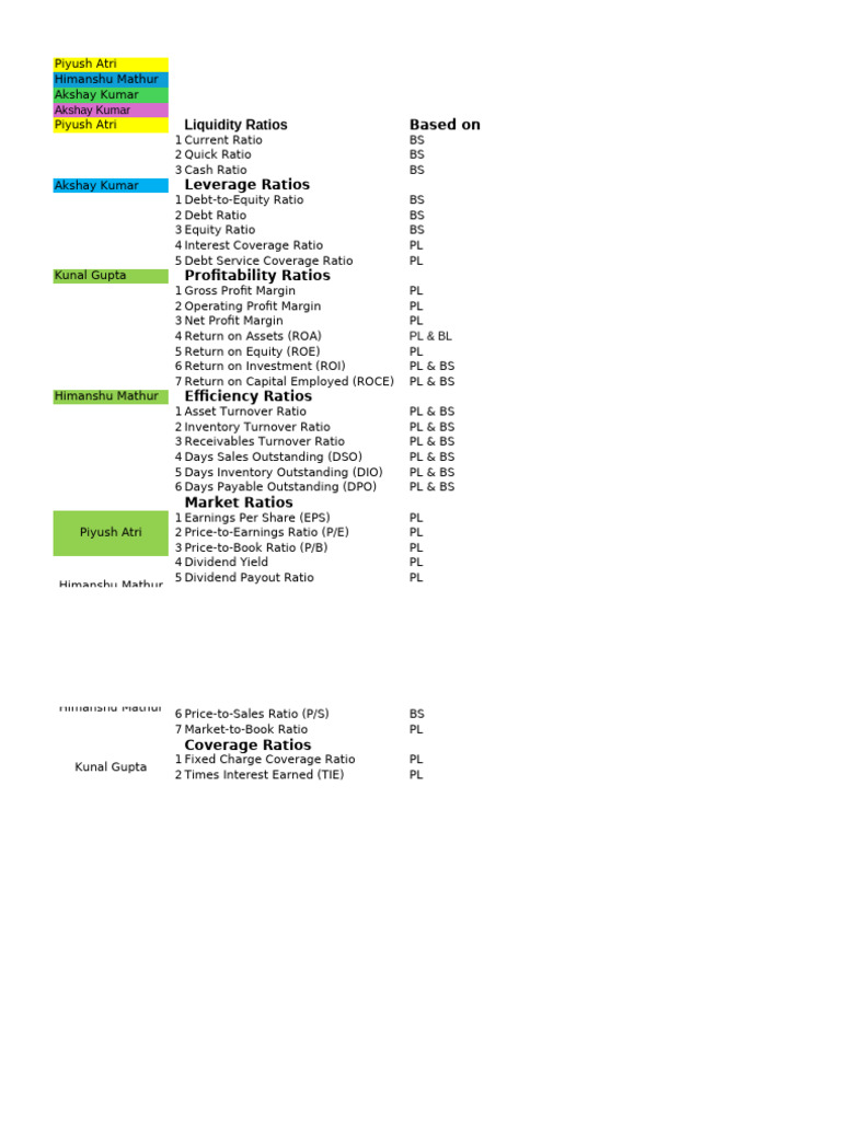 Piyush Atri Liquidity Ratios Based on