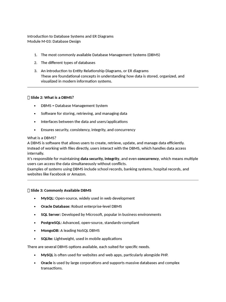 Management Systems (DBMS) and the different types of databases we use in the digital world.