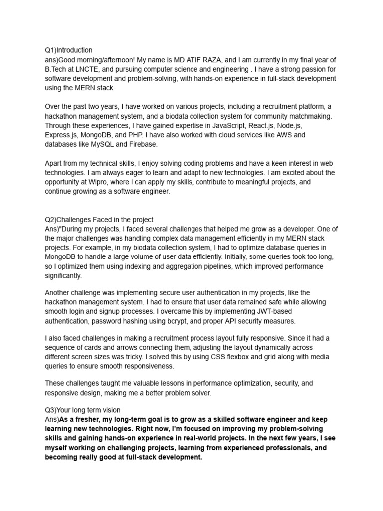 ans)Good morning/afternoon! My name is MD ATIF RAZA, and I am currently in my final year of