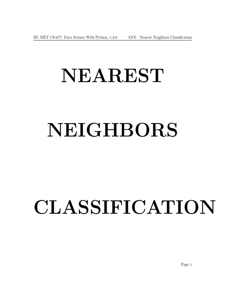 BU MET CS-677: Data Science With Python, v.2.0 kNN - Nearest Neighbors Classification